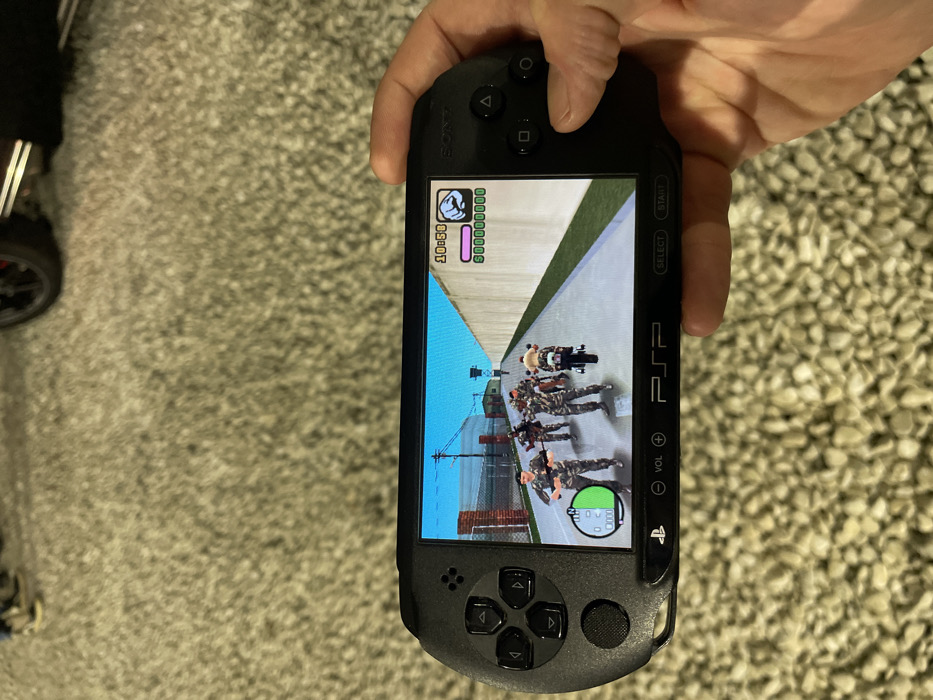 - "A hand holds a black PlayStation Portable (PSP) displaying the game "Grand Theft Auto: Vice City Stories" by FM-48J6M2, licensed under CC BY 4.0