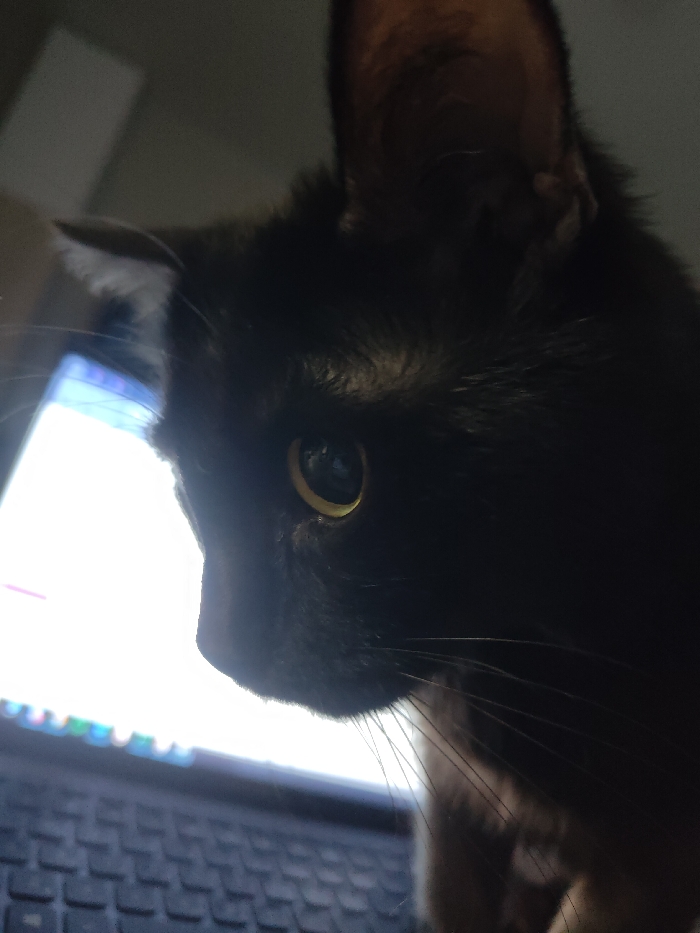 - "A close-up shot features a sleek black cat with striking yellow eyes" by FM-o6dT83, licensed under CC BY 4.0