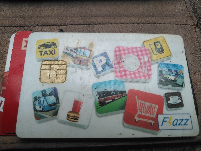 - "The image displays a single, rectangular white electronic payment or service card with rounded corners, resting on a textured, dark brown surface" by FM-f4dh13, licensed under CC BY 4.0