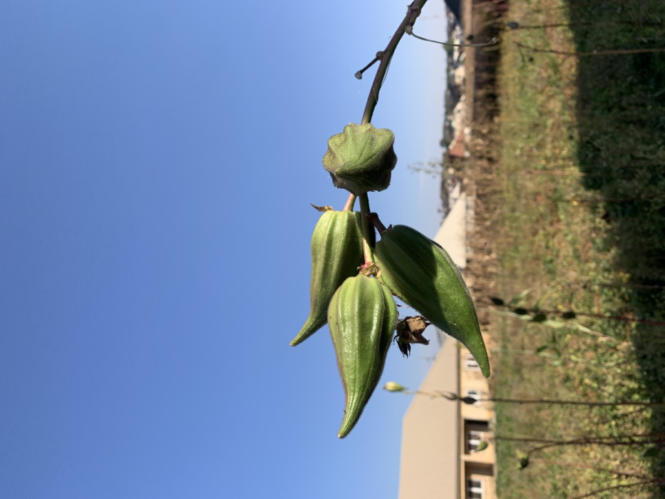 - "The scene depicts a close-up of an okra plant branch in Gura Top, Nigeria, against a backdrop of a clear blue sky and an undeveloped landscape" by FM-1vloc2, licensed under CC BY 4.0