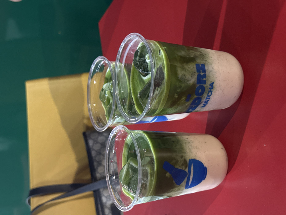 - "Two cups of matcha latte sit side-by-side on a vibrant red surface" by FM-AIn2W2, licensed under CC BY 4.0