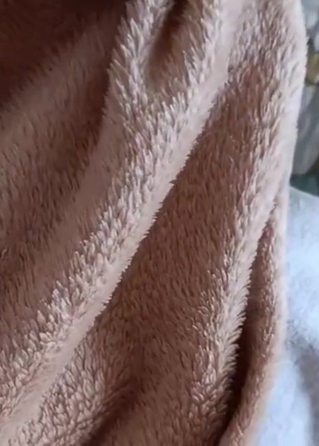 - "A baby is lying down and covered by a brown blanket and a light gray blanket, wearing a light gray hat with small ears on top, a pink sweater, and a yellow shirt underneath" by FM-qNW302, licensed under CC BY 4.0