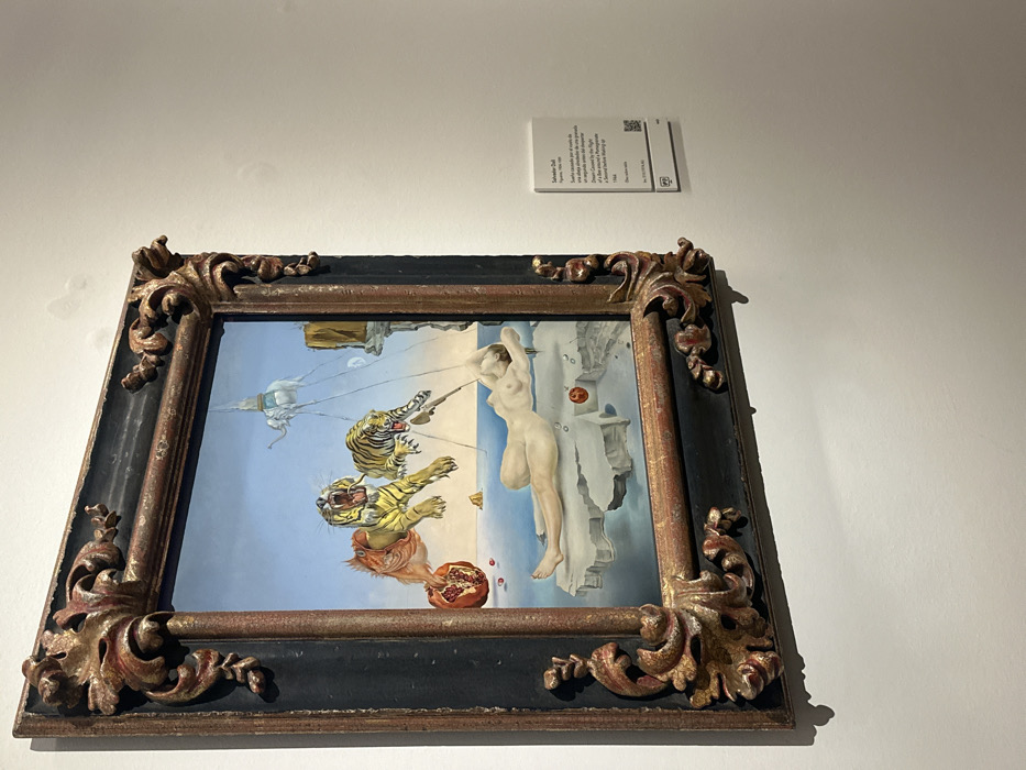 - "A vertical photograph captures Salvador Dalí's oil painting "Dream Caused by the Flight of a Bee Around a Pomegranate a Second Before Waking Up" (1944), displayed within the Museo Nacional del Prado in Madrid, Spain" by FM-1e4ny2, licensed under CC BY 4.0