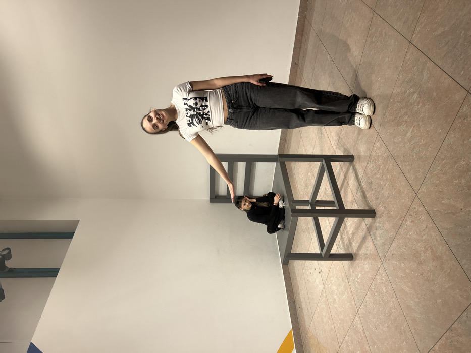 The image displays an indoor scene within the Museum of Illusions in Sofia, Bulgaria