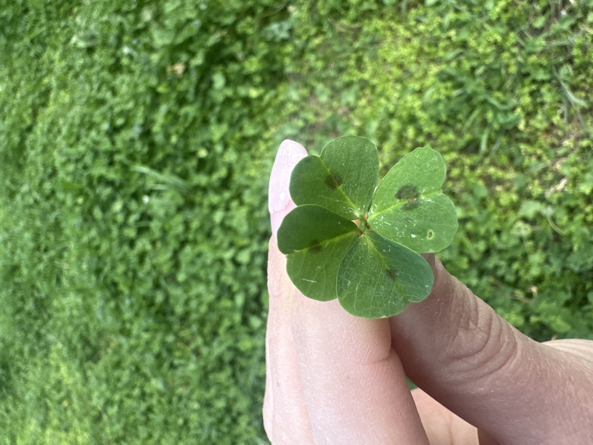 - "A close-up shows a four-leaf clover held between a person's thumb and index finger" by FM-wPb513, licensed under CC BY 4.0