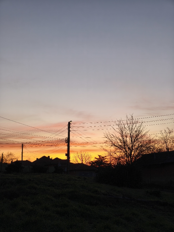 - "The image captures a rural or semi-rural landscape in Slavyanovo, Bulgaria, at either sunrise or sunset" by FM-r4Hhz2, licensed under CC BY 4.0