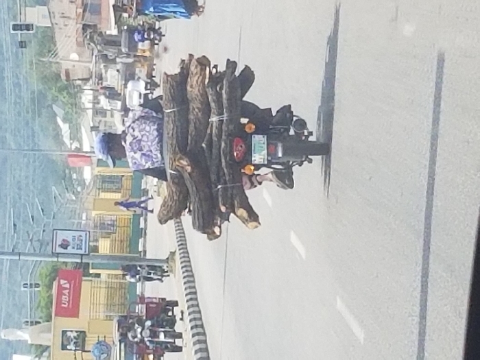 The image depicts a daytime street scene in Lokoja, Nigeria