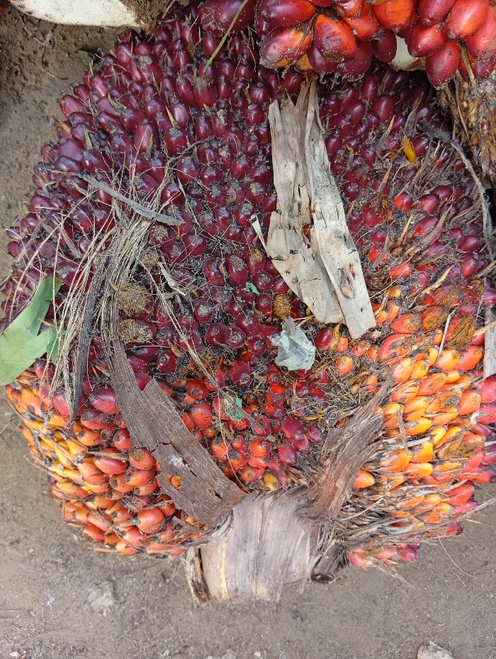 - "A Fresh Fruit Bunch (FFB) of oil palm fruits is depicted, resting on a light brown, earthy surface" by FM-7gsdz2, licensed under CC BY 4.0