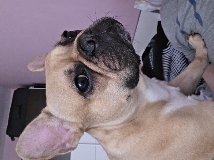 - "A fawn-colored French Bulldog is positioned in the foreground, facing right and upwards within the frame" by FM-FUkZH3, licensed under CC BY 4.0