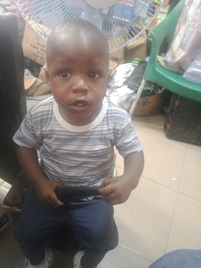 - "In an indoor retail or storage area within Akodo, Nigeria, a young, dark-skinned child, approximately 1-3 years old, is seated, facing the camera directly" by FM-qQJIC2, licensed under CC BY 4.0