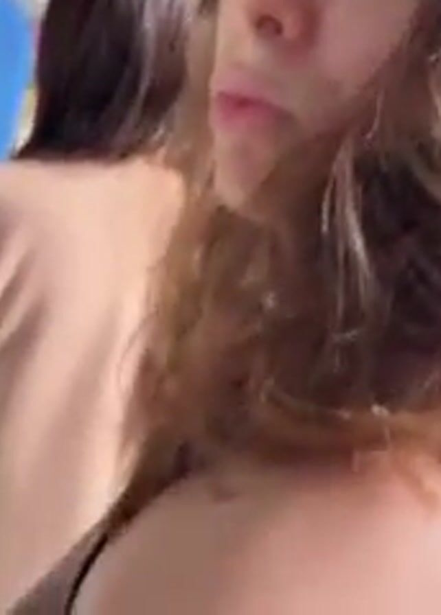 woman walking into a cafe. There are other customers in the cafe. The video is shaky and the camera angle is unusual. The woman is wearing a brown shirt and dark pants. The cafe has white floors. There is a counter with a barista behind it.