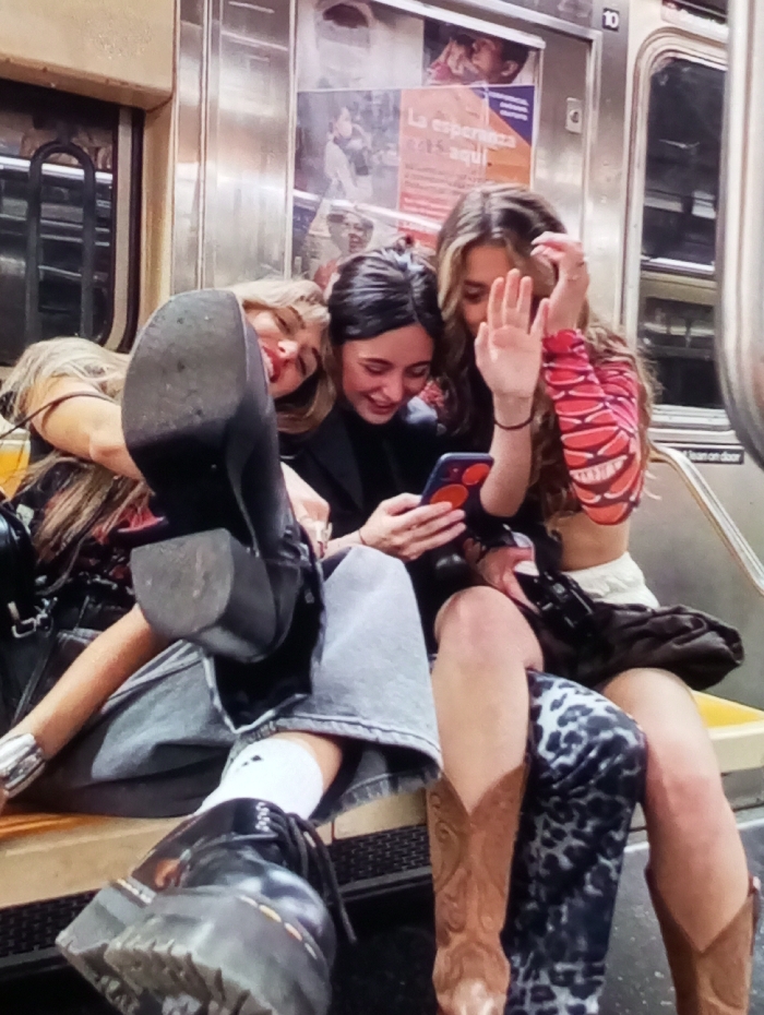 - "Three young adult females are seated inside a public transit subway car in Stopiņu pagasts, Latvia" by FM-1UPjC3, licensed under CC BY 4.0