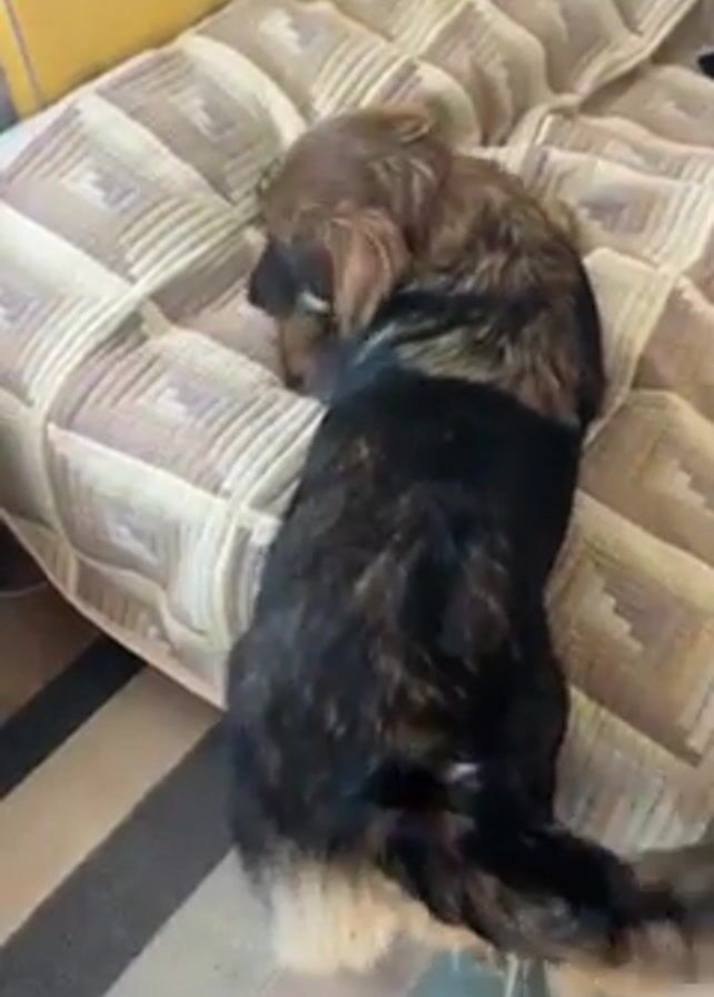 - "A dog with brown and black fur lies on a patterned bed" by FM-CAOHw1, licensed under CC BY 4.0