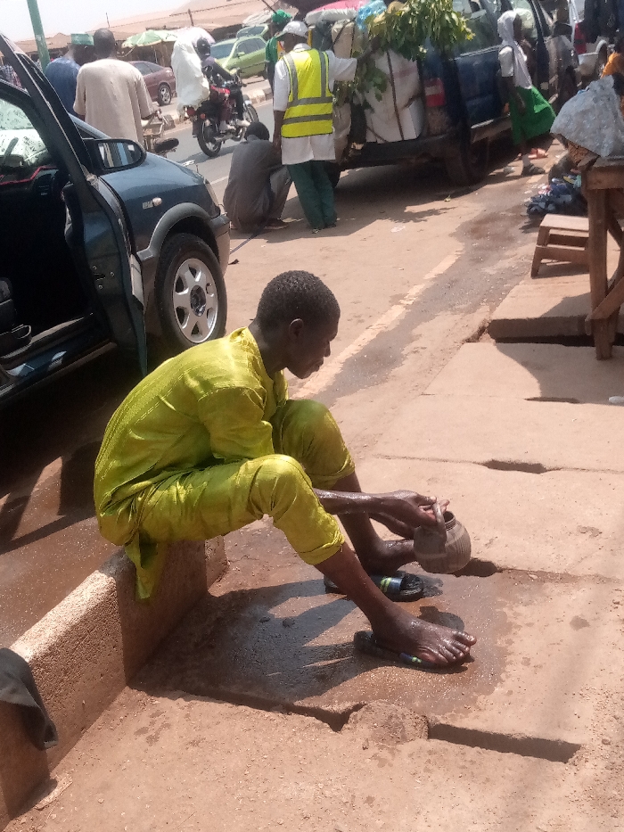 The image captures an outdoor street scene in Kafanchan B, Nigeria, under clear daylight conditions