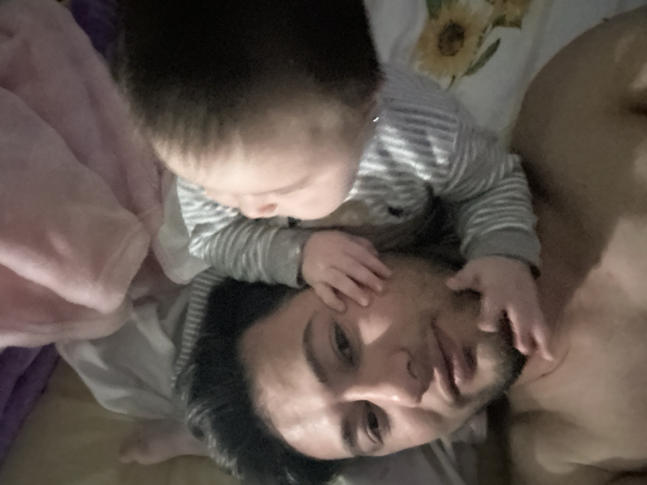 - "A shirtless man lies on his back with a baby on top of him" by FM-ciE9C3, licensed under CC BY 4.0