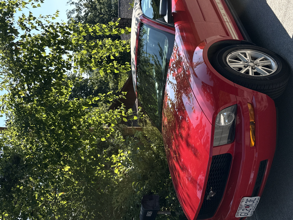 - "A red Ford Mustang convertible (S197 generation) is prominently featured, parked on an asphalt surface under a canopy of dense green foliage" by FM-EQHYk2, licensed under CC BY 4.0