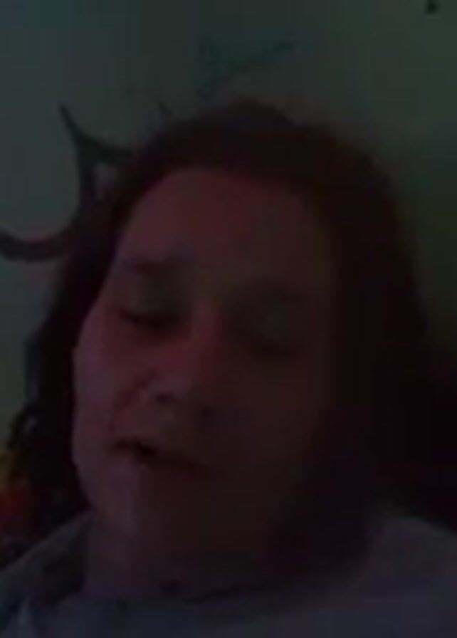 person speaking to the camera. The person has shoulder-length dark curly hair, and they appear to be lying down in bed. The room is dimly lit, with artwork visible on the wall behind them. The video is shot from a low angle, with the camera focused on the person's face. The person's facial expression appears to be neutral. They state that they are an artist and can do small canvases.