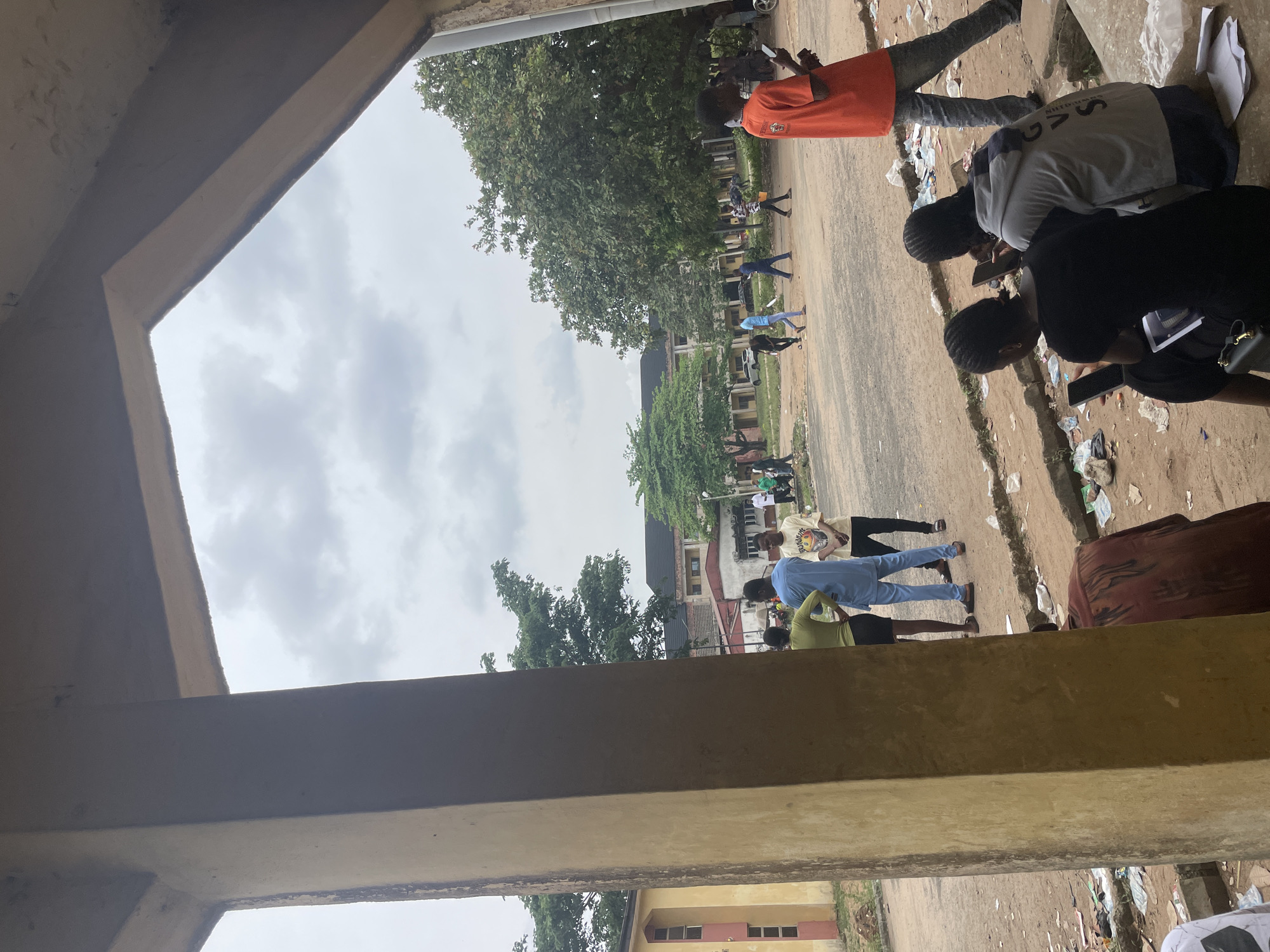The image captures an outdoor scene in Ihiagwa, Nigeria, under an overcast sky