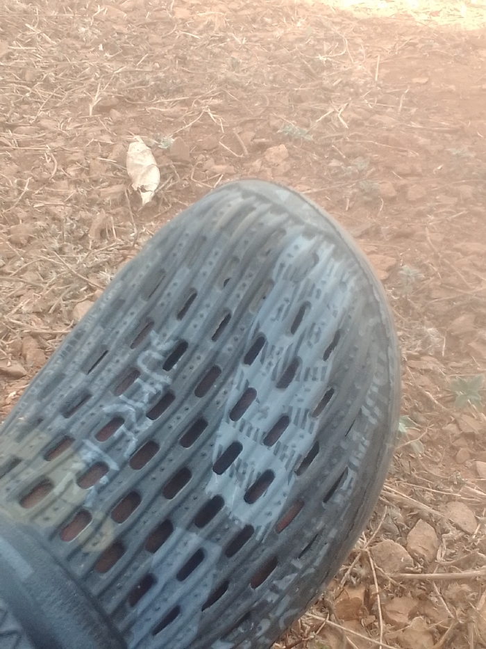 - "A human foot, partially visible, is depicted wearing a dark grey perforated plastic sandal on dry, reddish-brown earth in the city of Alor, Nigeria" by FM-TbpxC2, licensed under CC BY 4.0
