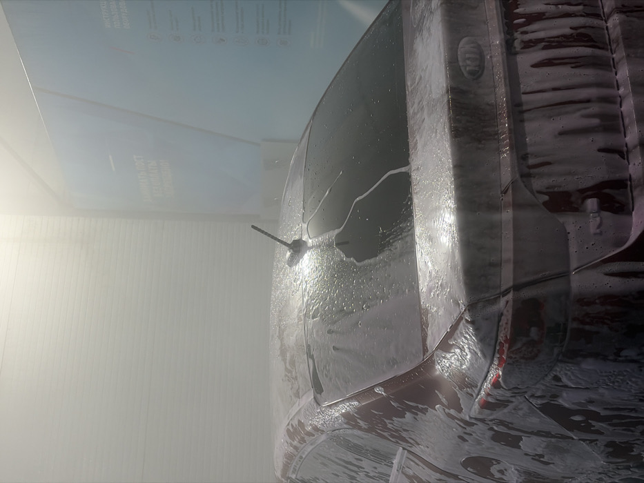 - "A maroon vehicle is being washed, covered in soap suds and water droplets" by FM-Opnib2, licensed under CC BY 4.0