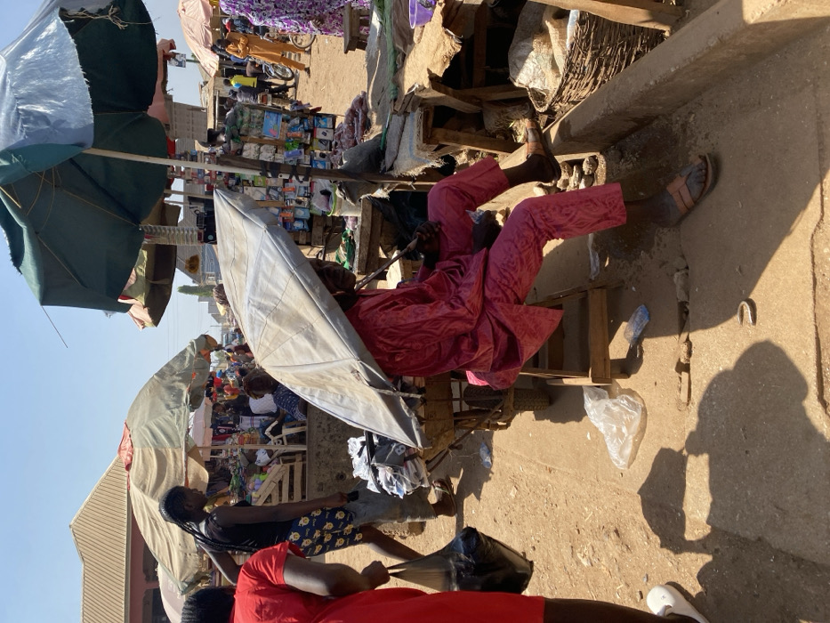 This image depicts a bustling outdoor market scene in Kafanchan B, Nigeria, under bright daylight
