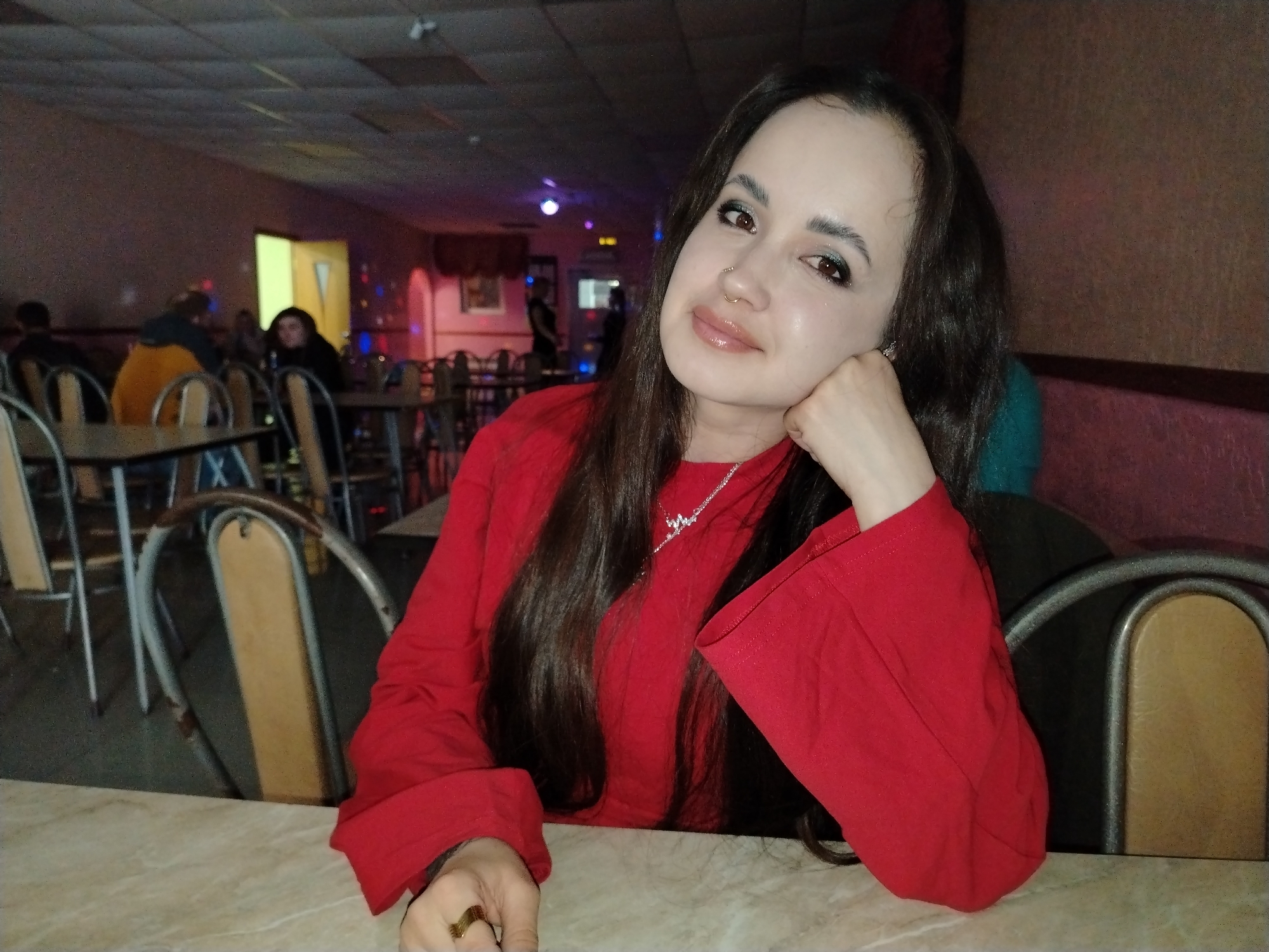 - "The image depicts a woman seated at a light-colored table in a dimly lit indoor establishment located in Kuyeda, Russia" by FM-J8Ma03, licensed under CC BY 4.0