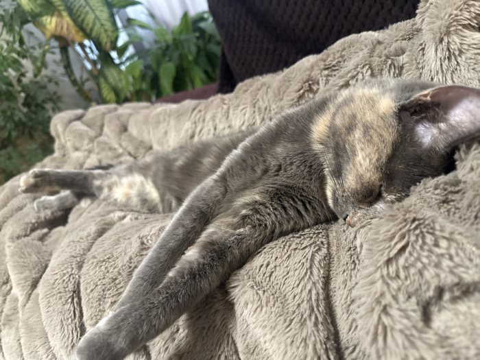 - "Within an indoor environment in Tutrakan, Bulgaria, a dilute calico or tortoiseshell cat is depicted in a state of sleep" by FM-pGXbg2, licensed under CC BY 4.0