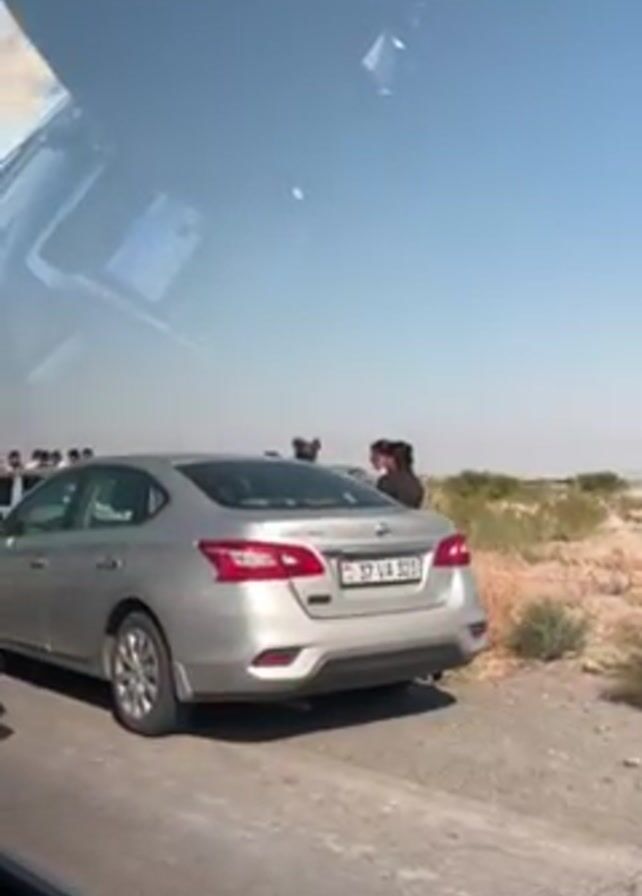The video, shot from a vehicle, shows the aftermath of a car accident