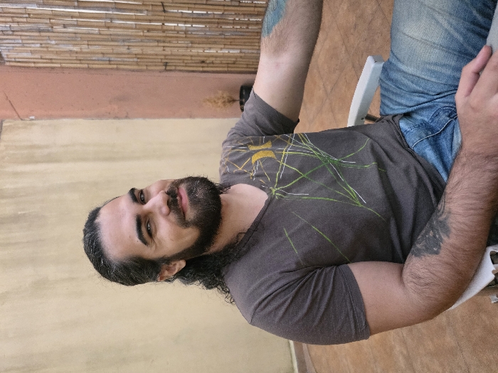 - "The image displays an adult male seated outdoors in Villa San Andrés, Argentina" by FM-XZJsC3, licensed under CC BY 4.0