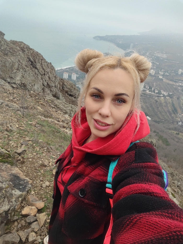 - "The image depicts a female individual taking a selfie on a rugged, rocky mountain slope overlooking Partenit, Ukraine" by FM-pJyc73, licensed under CC BY 4.0