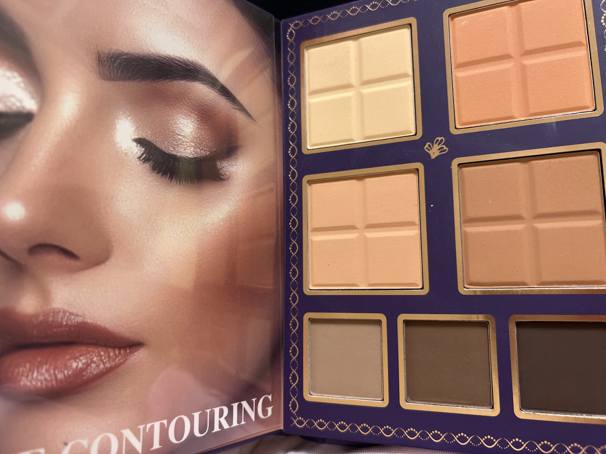 This image depicts an open makeup palette resting on a light-colored, soft surface in the city of Kabile, Bulgaria