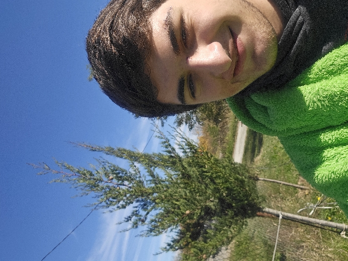- "A close-up, eye-level selfie-style image depicts a young adult male, smiling faintly, occupying the right half of the frame" by FM-oPbvC2, licensed under CC BY 4.0