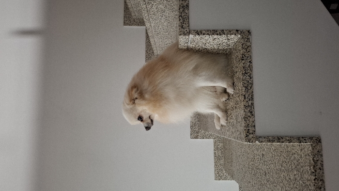 - "An indoor scene in Barcelos, Portugal depicts a small, light-cream and tan Pomeranian-type dog" by FM-VH5CK2, licensed under CC BY 4.0