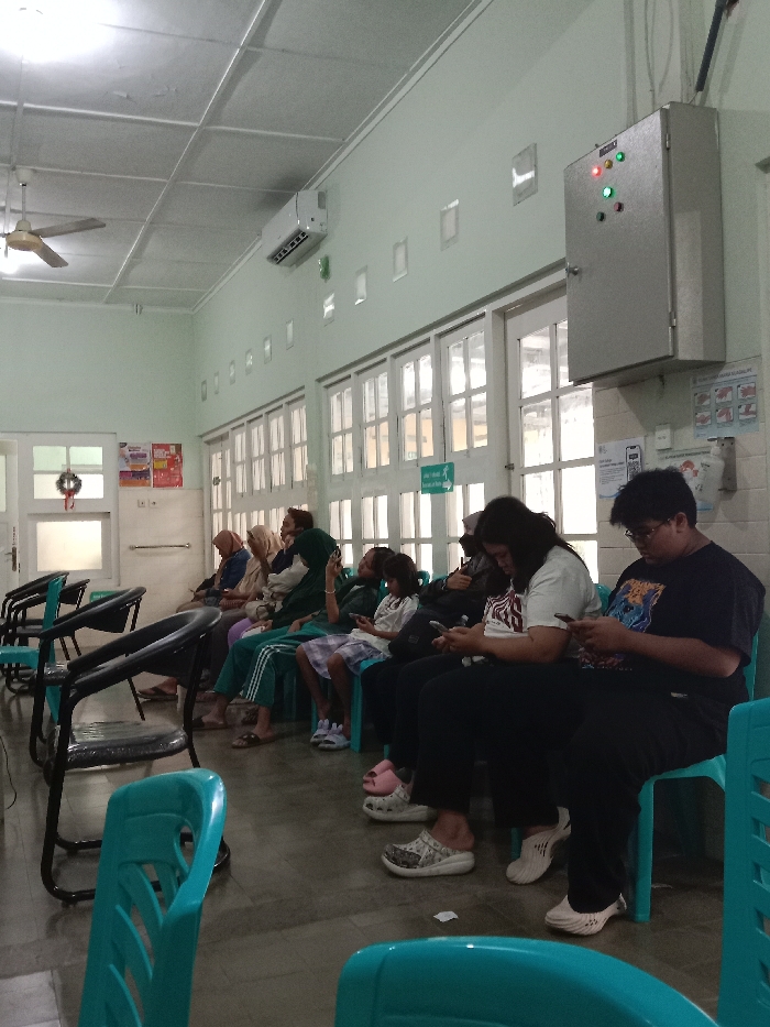 The image depicts an indoor waiting area located in Madiun, Indonesia