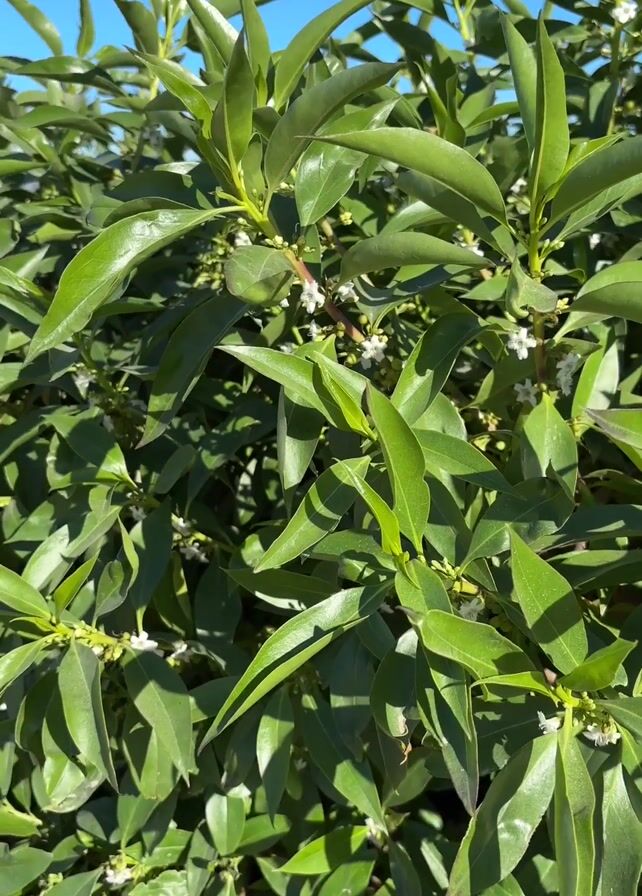 The video begins with a close-up of a green bush with small white flowers, then transitions to a wider view showing a sandy beach on a bright sunny day