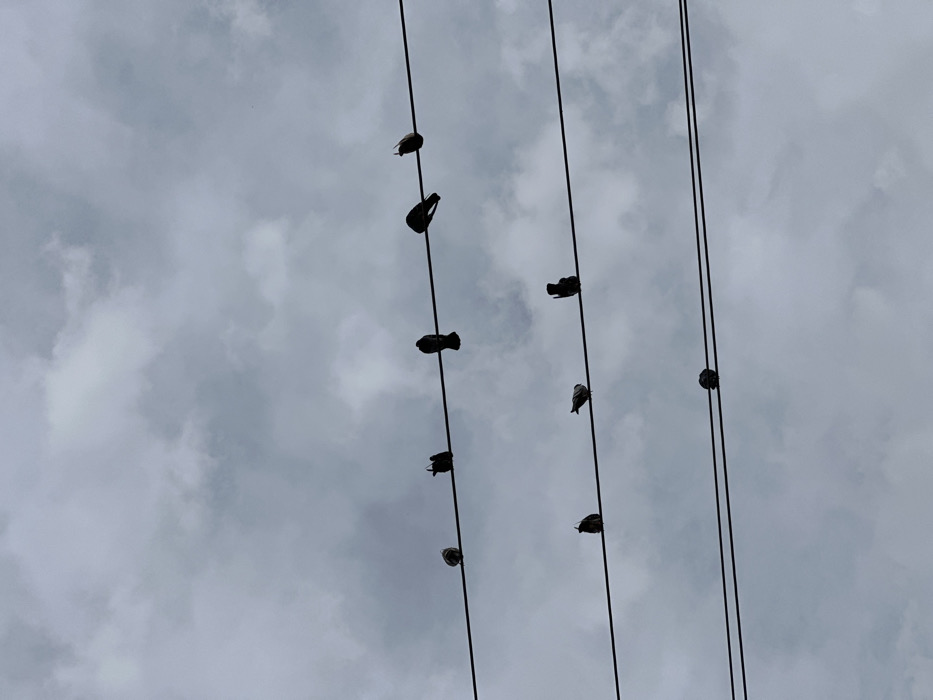 - "The image captures an overhead perspective of three parallel utility wires populated by ten birds, rendered in silhouette against a cloudy, grey sky in Beit Yitshak Sha'ar Hefer, Israel" by FM-RIphO2, licensed under CC BY 4.0