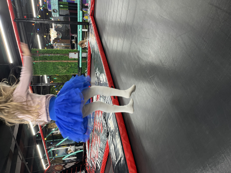 - "A young girl in a pink long-sleeved shirt and a bright blue tutu jumps on a trampoline" by FM-FgmyG3, licensed under CC BY 4.0