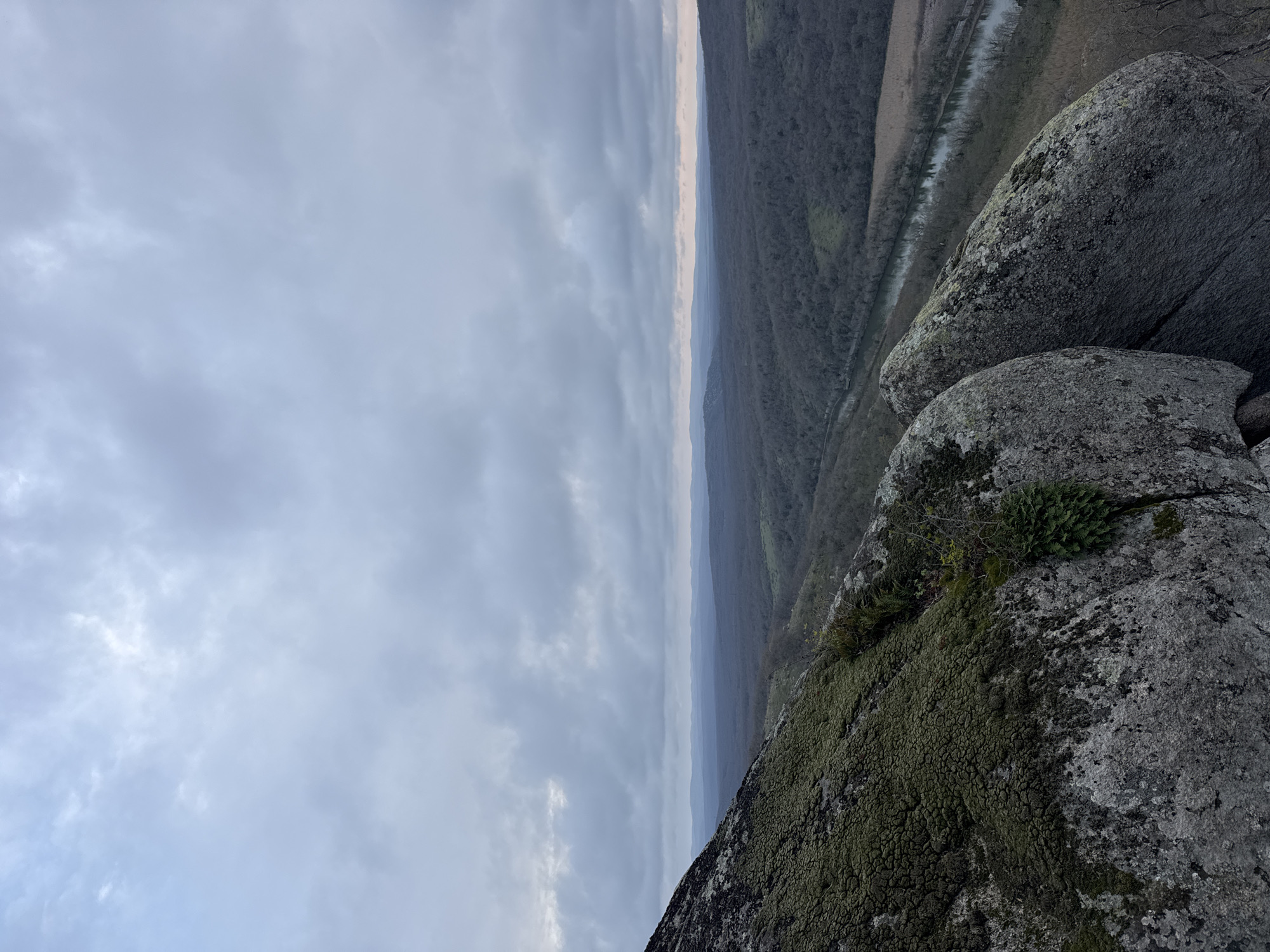 landscape scene taken from a high vantage point, possibly a rocky outcrop