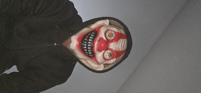 - "A person wearing a black hoodie and a menacing clown mask stares downward" by FM-TW7s93, licensed under CC BY 4.0