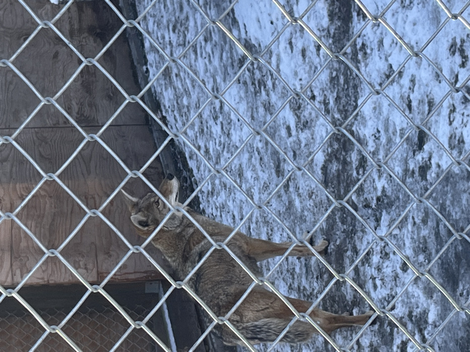 - "A coyote lies within a caged enclosure, its body angled horizontally" by FM-2bnDB3, licensed under CC BY 4.0