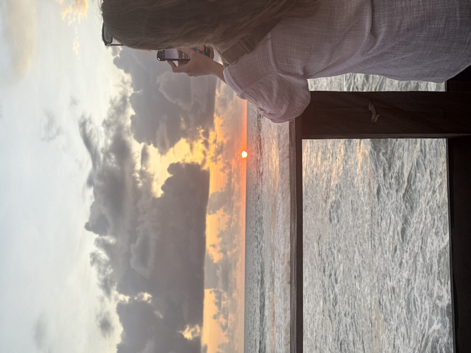 - "An individual is observed from behind on a wooden structure, likely a pier or elevated deck, overlooking the ocean at sunset in Canggu, Indonesia" by FM-gfWXg2, licensed under CC BY 4.0