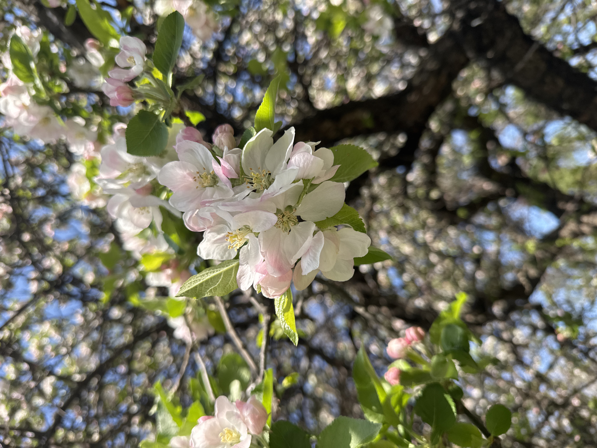 close-up view of apple blossoms in bloom