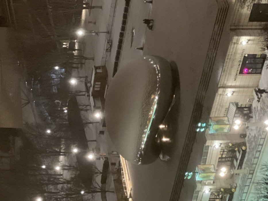 - "The image depicts a snowy cityscape at night, with the prominent "Cloud Gate" sculpture (the Bean) covered in snow" by FM-QWHju2, licensed under CC BY 4.0