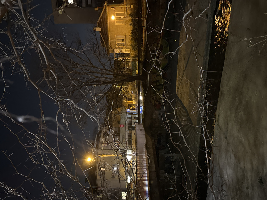 - "This image depicts a nighttime urban scene in Sofia, Bulgaria, observed through a dense foreground of bare, thorny tree branches, likely from a honey locust" by FM-5BLXP2, licensed under CC BY 4.0