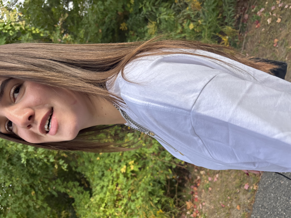 A young adult female is depicted in a medium close-up, outdoors in Wellesley, United States
