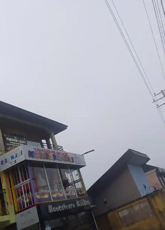 building with a business called "Homestcare Kiddies" on the ground floor. Above it, there is another sign that reads "Kids Paradise". The building is painted in yellow and white colors. There are power lines visible in the sky, which is overcast and gray. Another building with a blue and yellow exterior is visible next to it. The scene seems to be a street view, possibly in a residential or commercial area.