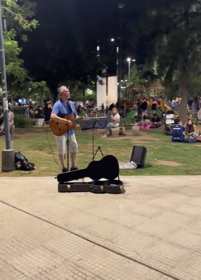 - "At night, a man is playing the guitar and singing in a park" by FM-CMArk2, licensed under CC BY 4.0