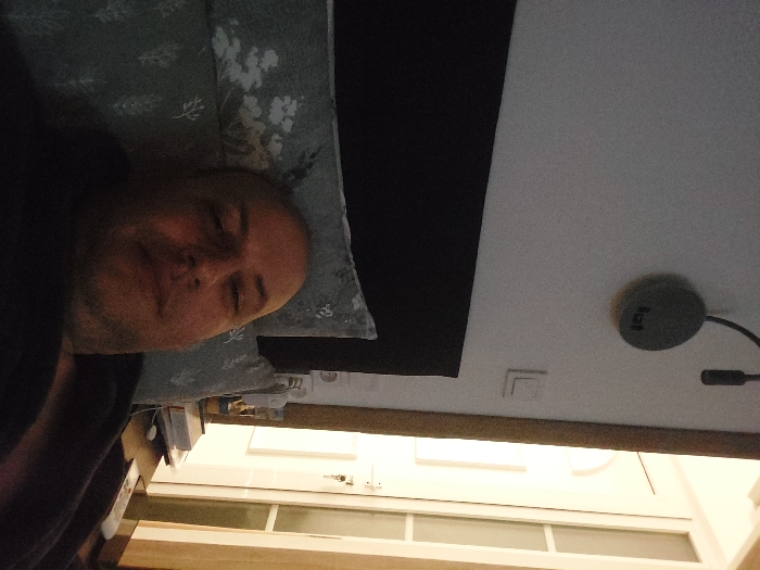 The image depicts an adult male in a bedroom located in Kalyvia Thorikou Municipal Unit, Greece