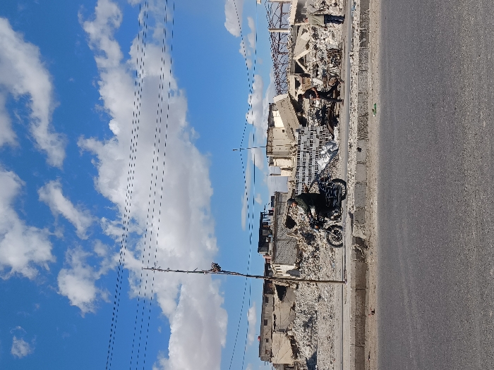 - "The image displays a daylight scene within Al-Qadam Municipality, Syria, characterized by significant urban destruction under a bright blue sky with scattered white cumulus clouds" by FM-hmmxi2, licensed under CC BY 4.0
