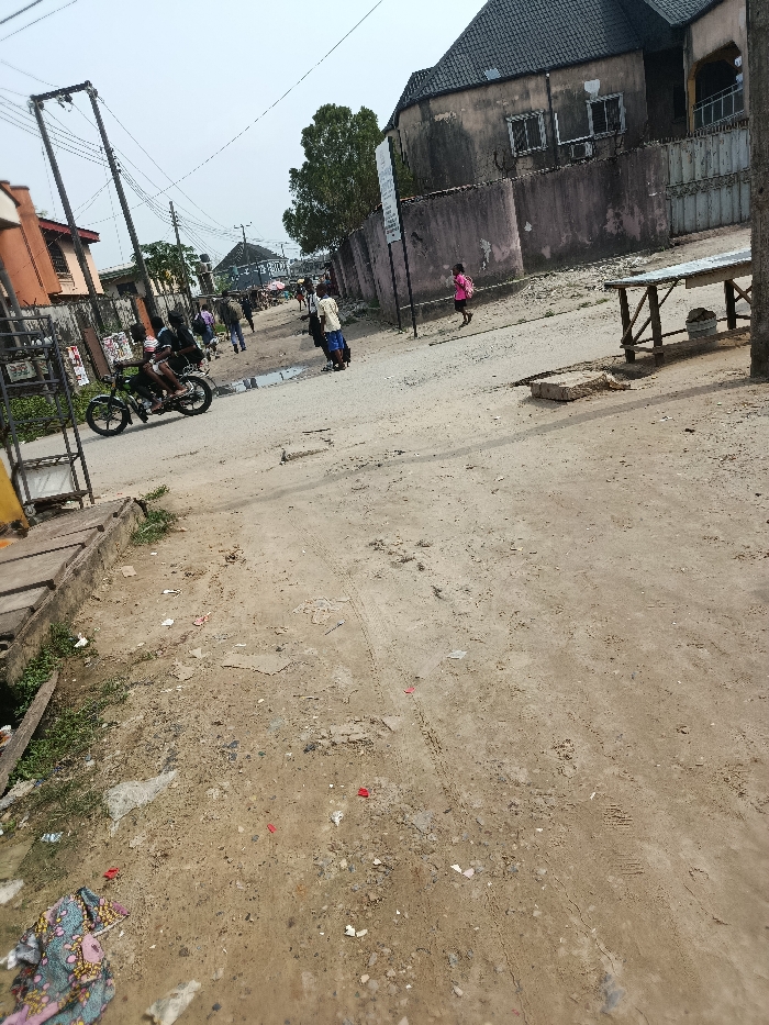 - "This image depicts an unpaved street scene in Warri, Nigeria, under an overcast sky" by FM-unnnr2, licensed under CC BY 4.0